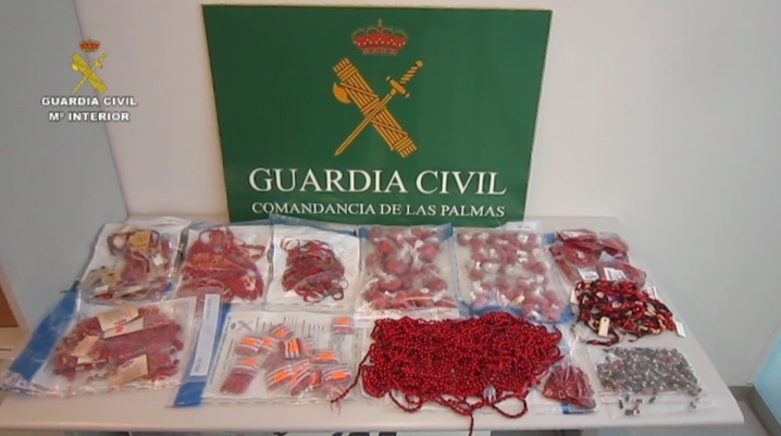 La Guardia Civil se incauta de más de 350 productos de bisutería elaborados con semillas tóxicas para la salud en diferentes comercios y mercadillos de las localidades de Mogán, Maspalomas y Vecindario, ubicadas al sur de Gran Canaria.