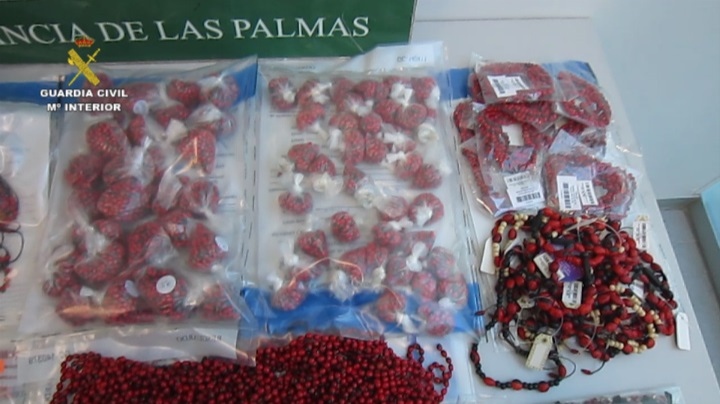 Según ha informado la Comandancia de la Guardia Civil de Las Palmas, la investigación se inició tras una alerta sanitaria de la Agencia Española de Consumo, Seguridad Alimentaria y Nutrición (Aecosan), que comunicó la aparición y utilización en piezas de bisutería de una semilla catalogada como tóxica.