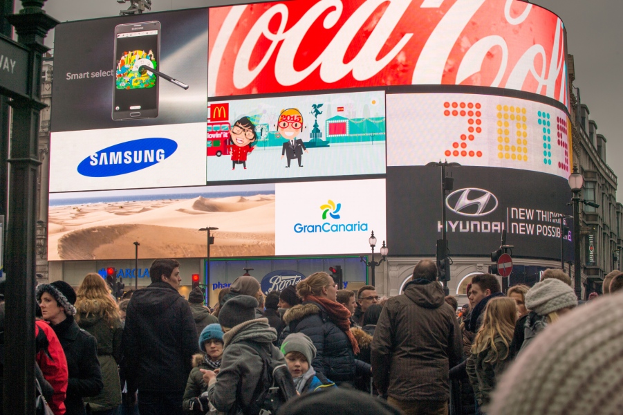 Más de dos millones de personas que transitaron la zona de Piccadilly, en el centro de Londres, durante la tarde-noche del pasado 31 de diciembre y la mañana del 1 de enero, día en el que se celebró la cabalgata de Año Nuevo, pudieron ver en la espectacular pantalla de Piccadilly Circus los vídeos sobre Maspalomas, Mogán  y el resto de Gran Canaria, que se repitieron durante varias horas.