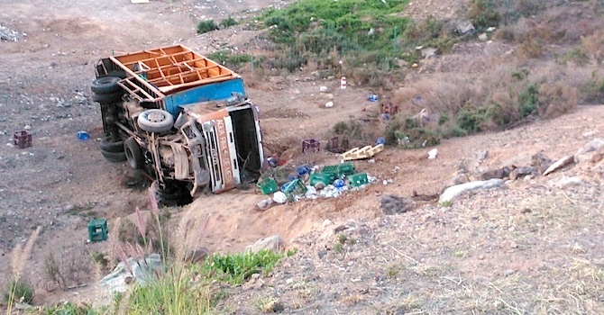 El conductor de un camión ha resultado herido de carácter menos grave al salirse de la vía y precipitarse por una ladera cuando circulaba con su vehículo por la autovía del sur de Gran Canaria, GC-1, a primeras horas de al mañana de este viernes, según ha informado el 112.