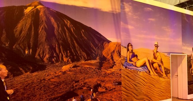 Las Dunas han aparecido hoy en Fitur a las faldas del Teide en el montaje elegido por el Gobierno canario para representar puntos de referencia de las islas en FITUR, una imagen que no ha gustado en Gran Canaria porque contribuye a ahondar en la creencia de que Maspalomas está en Tenerife, una vieja disputa que se renueva cada vez que “por error” Tenerife se publicita con fotos de Gran Canaria.