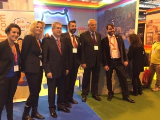 En este mismo stand el alcalde Marco Aurelio Pérez y los dos concejales del área de Turismo de San Bartolomé de Tirajana compartieron con el conceller de Turismo de Ibiza, Vicente Roig, y la directora de Tour Media de El Corte Inglés, Rosa Paramio, un ameno e intenso intercambio de opiniones sobre la especificidad del turismo LGTB en ambos destinos turísticos, y atendieron a medios de comunicación como Onda Arcoiris, Chueca Radio y GaylesTV.
