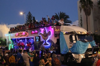 Como en anteriores ediciones, abrió la comitiva la Reina adulta e infantil, con sus respectivas damas de honor, precedidas de diferentes grupos del carnaval entre los que se encontraban comparsas, batucada de San Fernando de Maspalomas, la carroza de la Gran Dama y sus damas de honor, así como el Drag Queen del Carnaval, el segundo y tercer clasificado. Los disfraces ofrecieron su original colorido, música, magia, parodia con las habituales y divertidas escenas bajo el sonido de las carrozas.