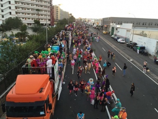 Durante el recorrido, las principales calles de la zona turística se convirtieron en una multitudinaria fiesta de alegría y color, en la que se participaron unas 300.000 personas entre cancanavaleros y público.