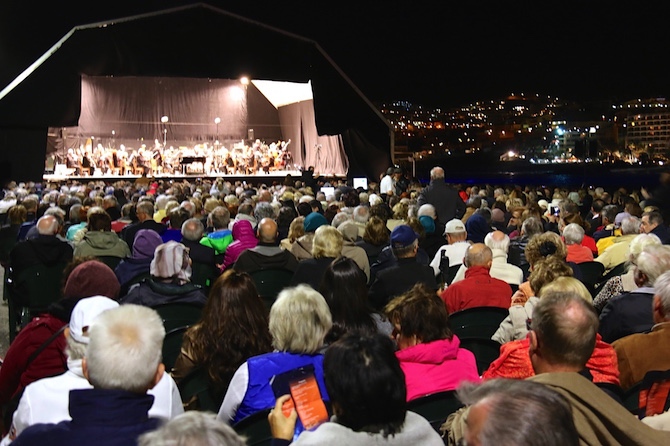 La Orquesta Filarmónica de Gran Canaria (OFGC) ha ofrecido este sábado noche, en el Muelle de Arguineguín (Mogán), el “Concierto bajo las estrellas” al que asistió más de 1.500 personas.