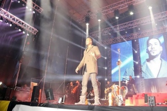 Romeo Santos, que aterrizó en Gran Canaria en su propio jet privado sobre las 17.00 horas, no fue hasta la media noche cuando subió al escenario acompañado de 18 músicos, de un total de 39 personas que le acompañan en la gira.