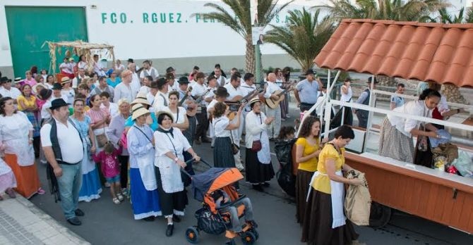 Grupos folklóricos y vecinos dieron un enorme colorido a la romería, amenizada con música canaria y canciones de parranda