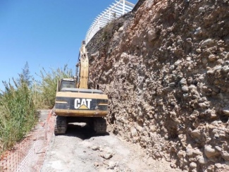 La mayor dificultad de la obra en ejecución hasta el momento ha sido habilitar el acceso a la maquinaria pesada retroexcavadora hasta la zona problemática y con mayor degradación, debido a la elevada pendiente natural del talud.