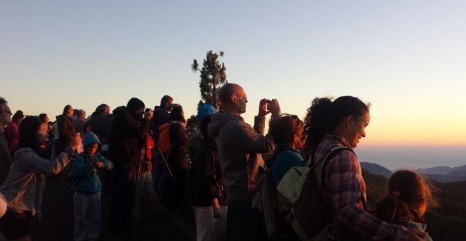 La caminata familiar nocturna de introducción a la astronomía se llevó a cabo el sábado entre el Pico de Las Nieves y la Caldera de Los Marteles. Participaron unos 60 caminantes guiados en el sendero por personal de la Concejalía que dirige Roberto Martel Quintana, y en las explicaciones técnico-científicas sobre el firmamento por el estudioso autodidacta de la astronomía canaria Israel Tejera Falcón, que ya ha descubierto más de 70 estrellas binarias.