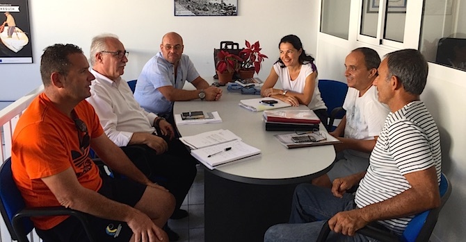 El consejero del Cabildo Insular de Gran Canaria, responsable del área de sector primario y sostenibilidad alimentaria, Miguel Hidalgo, acompañado por la concejala de Nueva Canarias en Mogán, Isabel Santiago, mantuvieron una reunión infomativa con los representantes de la cofradía de Arguineguín