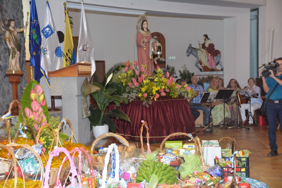 Durante la celebración los asistentes rezaron en común y en alta voz la oración específica dedicada a la patrona, y cerraron la ceremonia haciendo la tradicional ofrenda a la Santa, consistente de forma simbólica en sábanas y alimentos, y de forma material en numerosas cajas y cestas individuales y colectivas con frutas, verduras, todo tipo de productos alimenticios de larga durabilidad y también productos de limpieza y de higiene personal que serían entregados posteriormente a Cáritas del Sur y al desarrollo del proyecto Cahipso de atención a personas sin hogar.