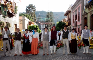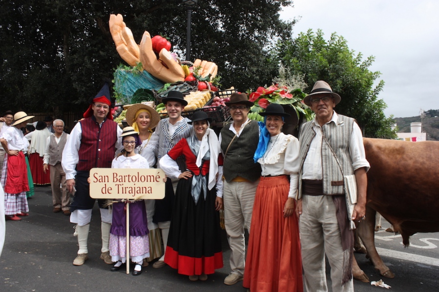 Desde primera hora de la mañana y en la zona conocida por el "Castañero Gordo", las carretas de los romeros fueron decoradas con las mejores flores, frutas y verduras de la tierra, quesos, chorizos, morcillas, aperos de labranza y artesanía canaria.