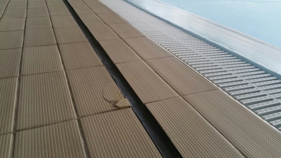 Ante el despegue de los azulejos del suelo de la piscina y de fugas de agua el Ayuntamiento de Mogán ha procedido a cambiar la superficie de azulejos por una de PVC.