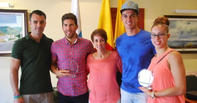 Onalia Bueno y Luis Miguel Becerra reconocieron los éxitos deportivos de Patrick Herrera Martín y Miriam Herrera Santana por su séptima posición en el Campeonato del mundo de salsa ‘World Salsa Open 2015’ y al subcampeón de España de triatlón, del grupo de edad 30-34, Willy García Jiménez.