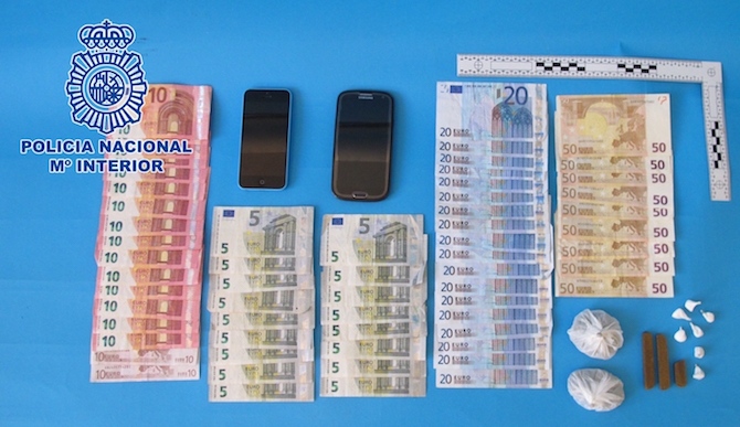 Según la nota, a los detenido se les incautó 6 gramos de cocaína, 18 gramos de marihuana, 3 trozos de hachís y 1.065 euros.