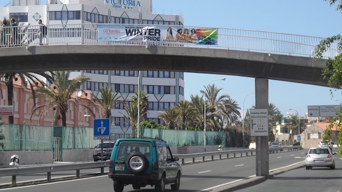 Vivir en la zona turística tiene sus normas. Una de ellas es respetar las comunes para que los turistas disfruten del complejo turístico y no de un bloque de viviendas de protección oficial. Los tendederos acaban con cualquier fachada. Observar desde la calle calzoncillos, sujetadores y demás prendas de vestir no es compatible, como tampoco los tendederos que encontramos en la GC-500, que separa la zona turística y residencial. Como sabrán, las lonas han llegado a esta sección en innumerables ocasiones, las mismas que el Ayuntamiento permite a sus promotores colgarlas sin respetar, ni tan siquiera la ordenanza que regula la publicidad en la vía pública. En este caso, no sólo impacta con el entorno sino que supone un riesgo y falta el respeto a los conductores que circulan por la vía. En cuando al contenido, les hacemos publicidad gratuita para quien necesite una segunda cabalgata carnavalera (en este caso de invierno), diseñada con el fin de "reivindicar” la tolerancia y la igualdad, lo que se traduce en especulación económica bajo el el semicírculo multicolor.