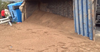 El conductor del vehículo que transportaba arena resulto ileso y salió por su propio pié, según informaron fuentes municipales