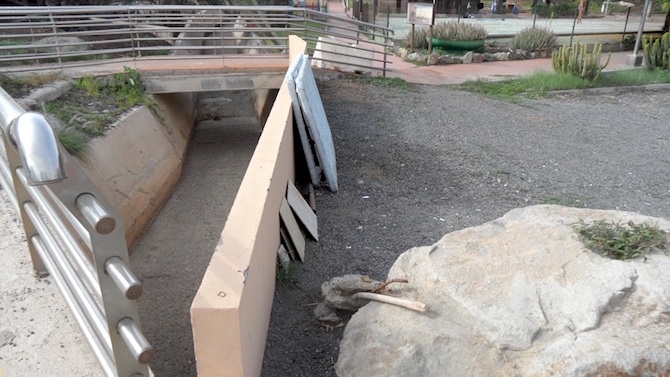 Y para terminar esta caminata, en San Agustín, en el barranco de Joseito, los soportes de este banco están partidos por ambos lados. Igual en la plaza de un pueblo podría permanecer así un tiempo, pero en una zona turística de nivel, que promociona en todo el mundo su planta alojativa y pública, debería tener prioridad. En la zona también encontramos colchones abandonados y demás basuras que no son agradables para los que transitan por el enclave turístico.
