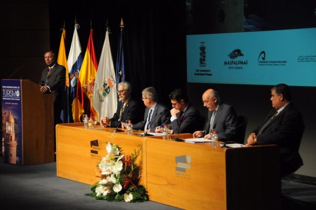 Soria ha inaugurado hoy el tercer Foro Internacional de Turismo de Maspalomas, en un acto al que también asistieron el rector de la Universidad de Las Palmas de Gran Canaria, José Regidor, y el alcalde de San Bartolomé de Tirajana, Marco Aurelio Pérez.