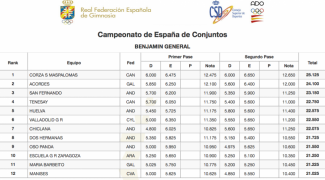 El Club de Gimnasia Corzas Maspalomas ha sido proclamado hoy campeón nacional absoluto en la categoría benjamín, en el Campeonato de España de Conjuntos celebrado en Valladolid