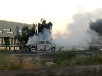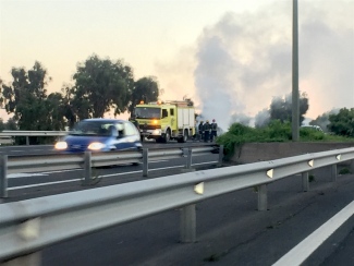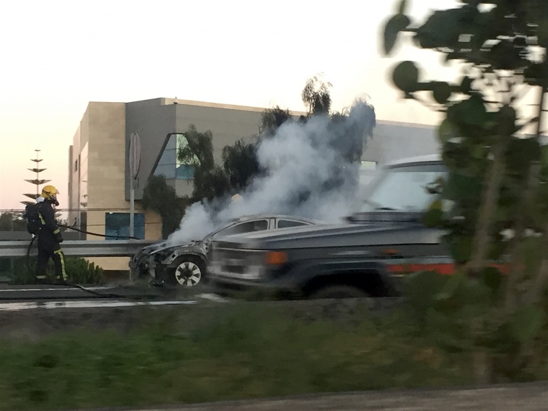 El vehículo quedó calcinado a la altura del aeródromo grancanario en sentido norte, aunque no hay daños personales por el suceso