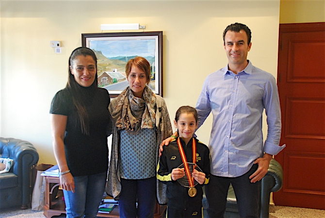 El concejal de Deportes destacó que “al igual que hemos realizado en anteriores ocasiones a otros deportistas, hoy premiamos y reconocemos el mérito deportivo de la joven gimnasta María Villalobos, que con solo 9 años se ha alzado como campeona de España de gimnasia rítmica en modalidad de conjuntos en categoría benjamín. Así, le otorgamos este galardón y le transmitimos nuestra disposición y apoyo para que sepa que puede contar con nosotros para cualquier tipo de ayuda o necesidad que tenga”.