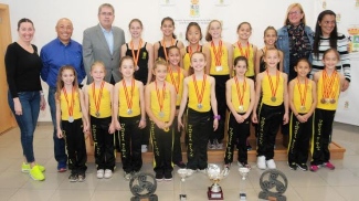 El equipo de gimnasia rítmica Arenas Croza’s Maspalomas, con un enorme palmarés en el ejercicio deportivo de 2015, ofreció al municipio de San Bartolomé de Tirajana todos los triunfos cosechados en los últimos meses. La entrenadora y ‘alma mater’ del equipo, Ana Cabrera, asistió a la recepción oficial en las Oficinas Municipales de Maspalomas, acompañada por la mayoría de integrantes del club, en sus distintas categorías. Las pequeñas deportistas portaron con orgullo y satisfacción las medallas y trofeos obtenidos, fueron recibidas por la primera autoridad municipal.