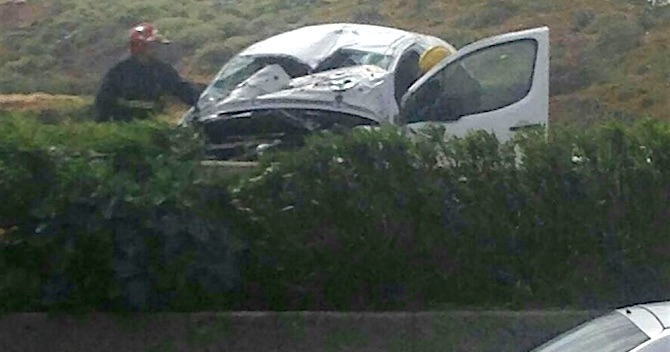 El primer accidente de la tarde fue un vuelco a la altura del Centro Comercial Las Terrazas a las 13.51 en dirección sur. Como consecuencia de este incidente uno de los ocupantes del vehículo fue trasladado a la Clínica San Roque de la capital grancanaria.