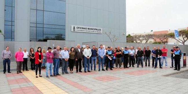 En el municipio de San Bartolomé de Tirajana se ha guardado un minuto de silencio por las víctimas del derrumbe de un edificio, días pasados, en la localidad tinerfeña de Arona. Usuarios y empleados de las Oficinas Municipales del Ayuntamiento, en Maspalomas, junto con un grupo de concejales, se sumaron a este acto de recuerdo para con las personas fallecidas y la pronta recuperación de los heridos.