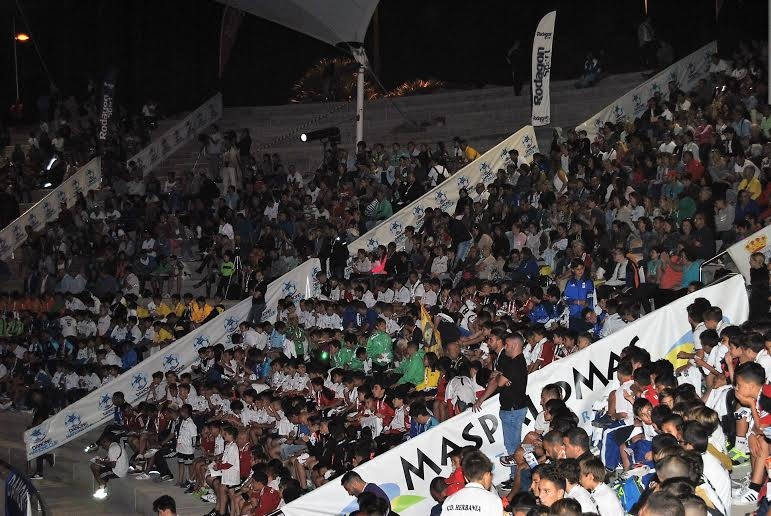 El IX Torneo de Fútbol Alevín Las Palmas ha iniciado en la noche de este jueves con una gala inaugural, desarrollada ante cerca de 2.500 personas en el Auditorio del Parque Sur de Maspalomas. Este viernes, a partir de las 16.00 horas, comenzará la competición en la Ciudad Deportiva sureña.