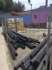 Desde Arguineguin nos llega esta fotodenuncia que muestra como se acumula el material de obra en los alrededores de la guardería municipal y que corresponde a los trabajos que se realizan en la calle Saulo Torón. Efectivamente, es la calle que tantos quebraderos de cabeza ocasiona a vecinos y empresarios, herencia del pasado y que en el presente no se sabe cuando concluirá. Es una autentica “irresponsabilidad” dicen algunos vecinos que nos remiten las fotos, por que en esta calle colapsada por completo desde hace meses, la acumulación de materiales de obra junto a un recinto infantil supone un serio riesgo para padres y niños.