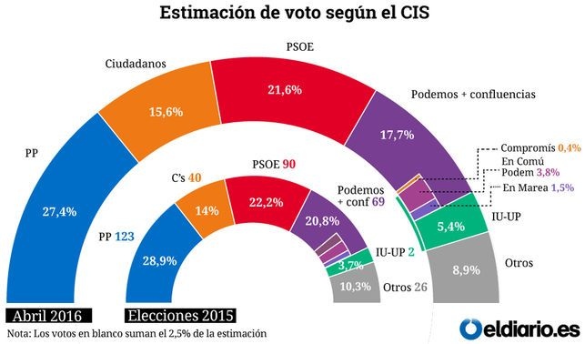 Según el barómetro del CIS de abril, el primero tras la nueva convocatoria de elecciones derivada del fracaso de las negociaciones para formar gobierno, el portavoz parlamentario de IU, Alberto Garzón, sigue siendo el líder político más valorado, incluso sube una décima respecto a la encuesta poselectoral del pasado enero.