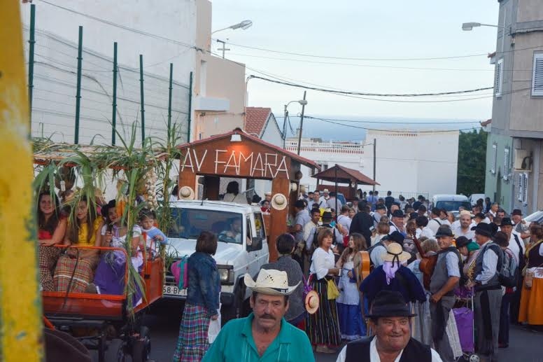 La organización de la Asociación de Vecinos Famara fue espectacular, y distribuidas en seis carretas se condujeron alimentos de diversa tipología ante la imagen de la Virgen de Fátima, para ser distribuidos luego entre las personas más necesitadas. No faltó la diversión y la fiesta se prolongó hasta bien entrada la noche por unas calles de Aldea Blanca inundadas de caudal humano. Desde las carretas se fueron aportando líquidos y viandas a los participantes, para ir prolongando la celebración festiva.