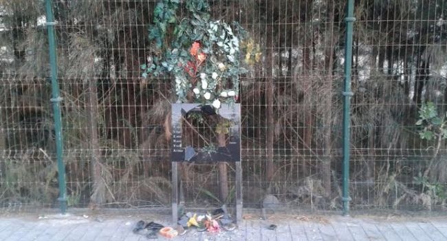 La placa había sido colocada por sus familiares y amigos en recuerdo y homenaje del Chera, a mitad de camino del núcleo de El Pajar y la Playa del Callao, donde solía surfear, justo en el lugar donde un infarto fulminante le despidió de la vida el 11 de octubre de 2014, cuando contaba con sólo 44 años de edad.