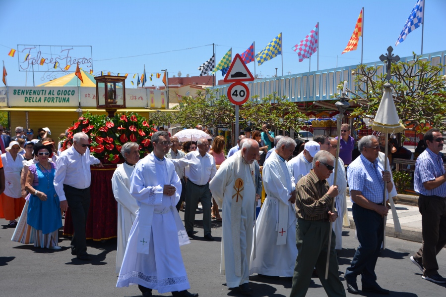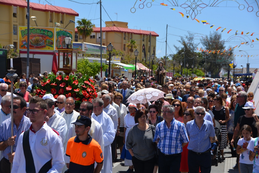Los vecinos de San Fernando de Maspalomas han celebrado hoy la misa procesión y un asadero de pescado, con motivo de la festividad del Día de Canarias y también el día grande de las patronales.