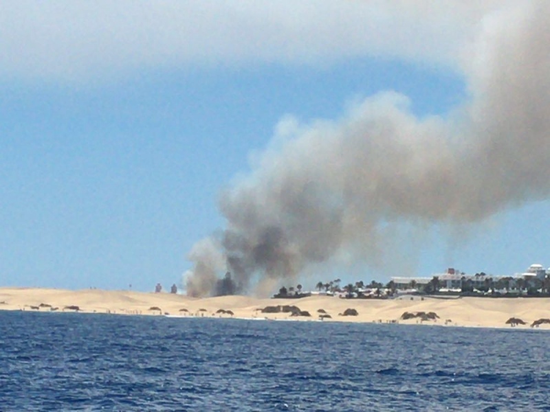 La larga columna de humo que originó el fuego producido cerca de la zona nudista de la playa fue visible desde casi todos los puntos de la zona turística de Maspalomas, lo que despertó el interés de turistas y residentes de la zona.