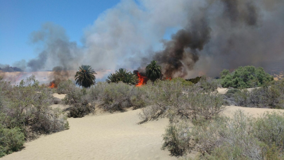 Ha afectado a dos hectáreas de matorrales próximos a la Charca de Maspalomas, ubicada dentro de la Reserva Natural Especial de Las Dunas de Maspalomas