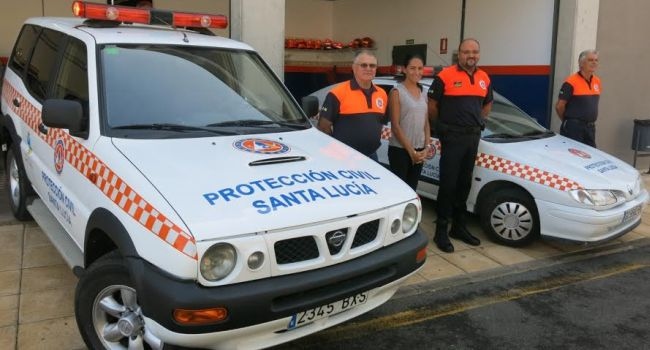 La Agrupación de Voluntarios de Protección Civil Santa Lucía ha presentado un todoterreno y un turismo con los que incrementa su flota para intervenciones en materia de emergencias