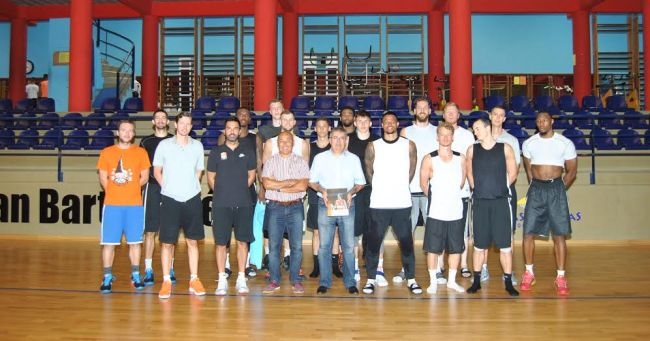 El alcalde de San Bartolomé de Tirajana, Marco Aurelio Pérez Sánchez, y el concejal de Deportes, Roberto Martel, estuvieron este miércoles en el pabellón El Tablero para dar una nueva bienvenida al conjunto germano, al que desde el municipio se han prestado todo tipo de facilidades para que efectúe su preparación.