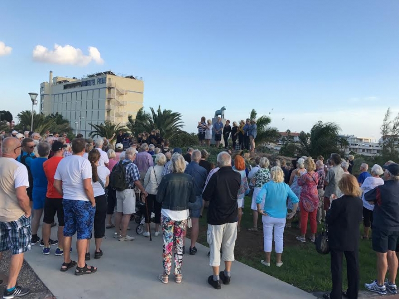 El acto se desarrolló en los jardines públicos situados a pocos metros del Aparthotel Folías, donde en noviembre del año 2012, coincidiendo con la celebración del cincuentenario del destino turístico Maspalomas Costa Canaria, el Ayuntamiento ubicó una escultura del famoso icono nórdico donado al municipio por la comunidad sueca.