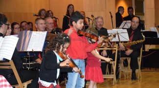 El repertorio corrió a cargo de la Banda de Música Maspalomas Sol y Arena, formada por alumnos de la Escuela; del combo de música moderna de la misma, de sus alumnos de violín, de los integrantes de los coros infantil y de adultos de la institución, y de los alumnos de folklore y de educación temprana