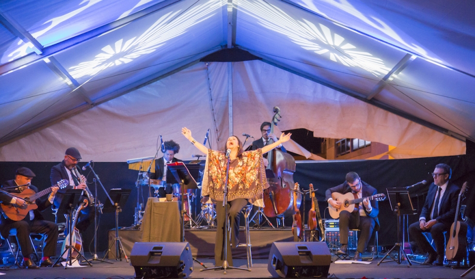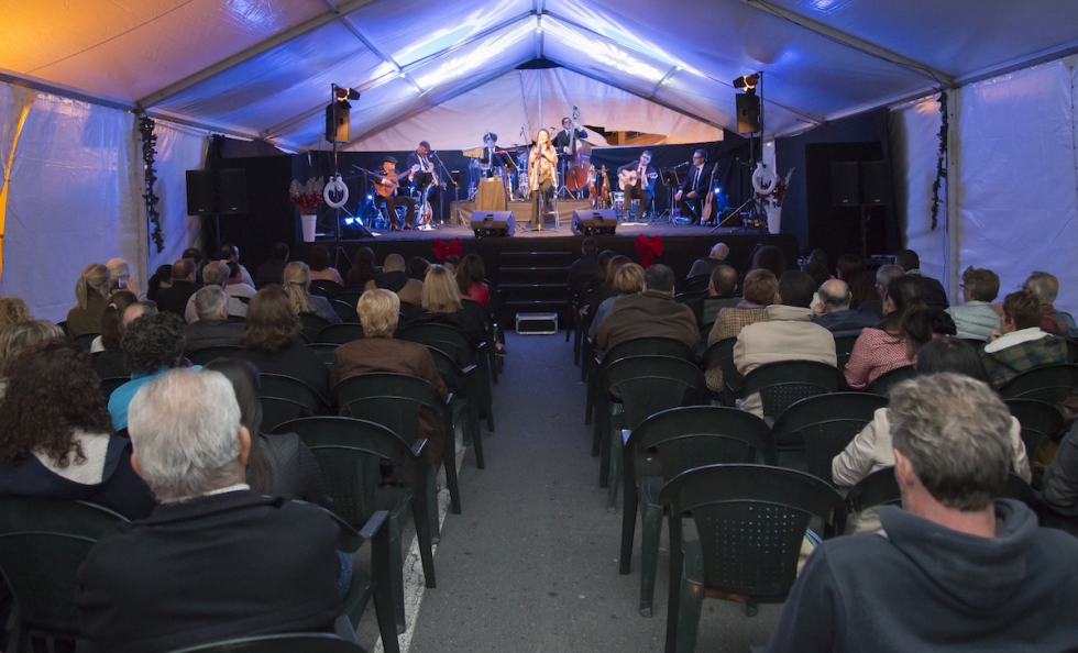 Olga Cerpa se mostró “muy entusiasmada” con el numeroso público que siguió el espectáculo desde la carpa habilitada junto al Ayuntamiento, donde actuó de nuevo después de doce años, precisó la carismática cantante, que interpretó temas conocidos de su repertorio como Pequeño fado, Mario, Luna y Fulgido, entre otros.