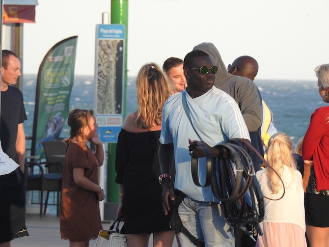 Te ofrecen pulseras, collares, pañuelos, gafas de sol… y si por si eso no es de su agrado, directamente, cogen la mano del turista para predecir su futuro y les cobran por un servicio que tiene más de estafa que de profesional.  Este tipo de prácticas se repiten constantemente durante las avenidas próximas a las playas del Sur de Gran Canaria, sobre todo en Playa del Inglés y Maspalomas, donde el acoso al turista hace que en ocasiones se sientan agobiados por estas prácticas. Aunque la Policía Local intenta poner freno a unas actividades no reguladas y multan a quienes las llevan a cabo, poco tiempo después, vuelven a ofrecer accesorios. Y así ya han pasado unas décadas.