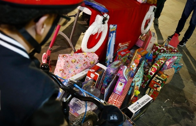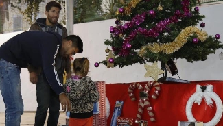 Así, los más pequeños fueron pasando uno a uno y depositando sus regalos junto a un árbol de Navidad, a la vez que se fotografiaban con los dos deportistas moganeros. Muñecas, peluches, puzzles, juegos lúdicos o coches de juguetes fueron algunas de las donaciones de los niños y también mayores.