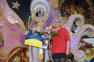 La candidata de Perfaler Canarias, Saskia Santana Macías, con la fantasía “Del color de las Mándalas” ha sido nombrada este sábado abanderada del Eurocarnaval Internacional de Maspalomas, con un diseño de Dámaso Ramos Dávila, en una noche en la que Europa celebró la gran fiesta del Carnaval.