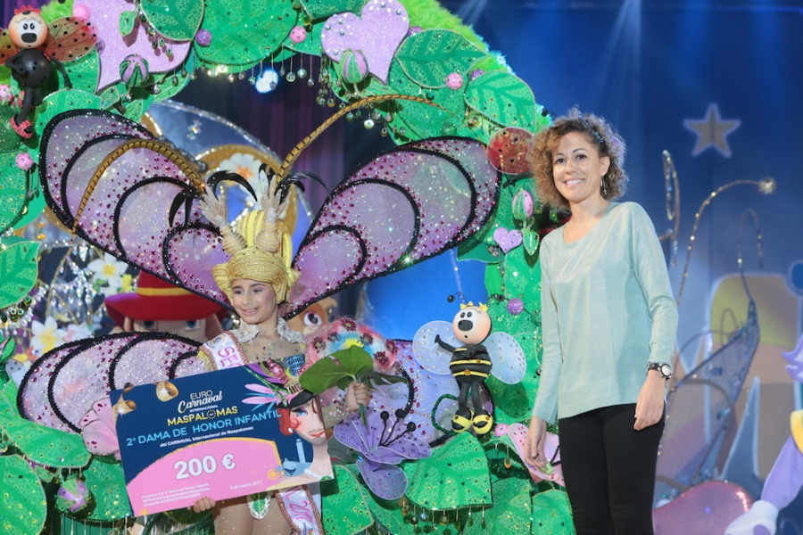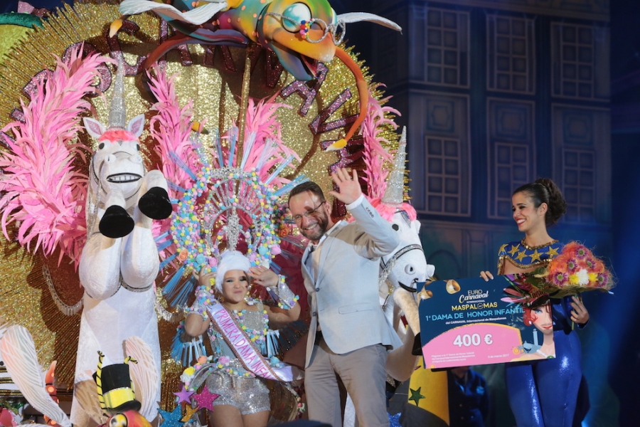La niña Gisel Cid Guardia, de 6 años, se ha proclamado en la tarde noche de este domingo Reina Infantil del Eurocarnaval, con la fantasía “Desde Europa a Maspalomas con Glamour”, con un diseño de Grisela Guardia Gómez, en representación de Dihova Distribuidores Hoteleras