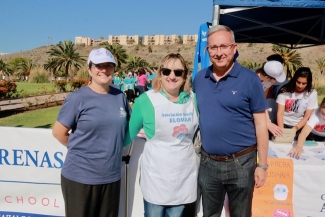 La iniciativa se trasladó al Parque Sur, gracias a la colaboración del consistorio, que estuvo representado por la concejal de Asuntos Sociales, Yurena Tejera Cruz y los usuarios del Centro Ocupacional de San Bartolomé de Tirajana, que con los Bomberos y el Club Baloncesto ECONY fueron los padrinos de la carrera.