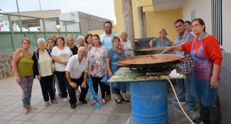 Un amplio equipo de colaboradores con las fiestas de El Pajar preparaba dos hermosos paelleros y varias patas de cerdo para que los mayores repusieran fuerzas tras el traslado hasta Arguineguín y la participación en los bailes dirigidos por Alejandro Rodríguez, entre otros.