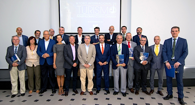 Tras la firma de los convenios, los organizadores entregaron placas de reconocimiento a los patrocinadores por su colaboración continuada durante cinco años y apoyo al Foro Internacional, evento “muy importante para Maspalomas, Gran Canaria, Canarias y el Turismo en general”, en palabras del Decano Juan Manuel Benítez.