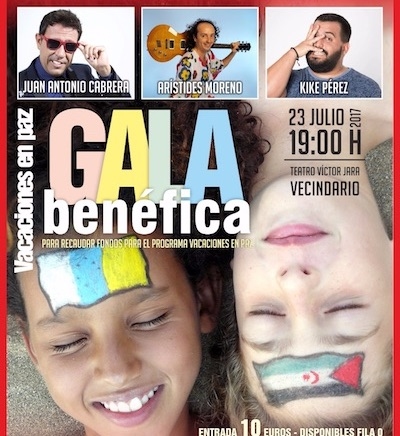 Este domingo 23 de julio a las 19:00 horas en el teatro Víctor Jara de Vecindario tendrá lugar la Gala Benéfica Vacaciones en Paz, cuyo dinero de las entradas se destinará al programa "Vacaciones en Paz" que protagonizan niños saharauis que son acogidos por familias canarias.